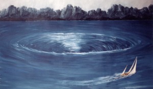 1994_la barca degli ottimisti-160×93 olio Sizes: 150 × 150 / 300 × 175 / 600 × 350 / 1935 × 1131 La barca degli ottimisti, 1994, oils on canvas, 160 x 93 cm